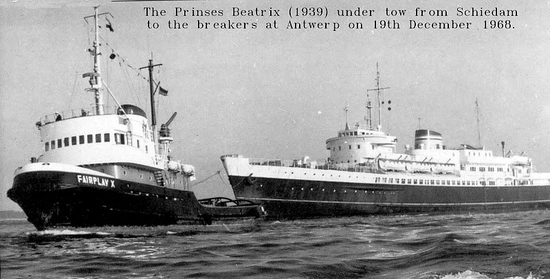 Een paar maanden later lagen de Emma en de Beatrix weer voor de rede van Vlissingen. De oorlog was voorbij, de dienst zat erop. Na alle administratieve formaliteiten werden ze weer overgedragen aan de SMZ, en moesten ze opnieuw worden aangepast. Vanaf 1948 kwamen ze weer in de vaart op het traject waarvoor ze oorspronkelijk waren gebouwd: Hoek van Holland – Harwich v.v.. Terwijl de Beatrix naar Engeland voer, kwam de Emma terug naar Nederland. En als de Emma naar Engeland ging, zette de Beatrix koers naar Nederland. En dat zo dóór, dag in, dag uit, tot in 1968 toen beide schepen naar Antwerpen werden gesleept om te worden gesloopt. Relatief jong nog, maar dat zal ongetwijfeld het gevolg zijn geweest van de zware wissel die in de oorlogsjaren op beide schepen was getrokken.