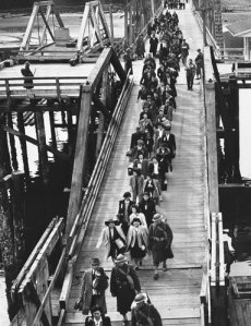 Soldaten, met bajonet op het geweer, leidden hen naar een veerboot. Na een driedaagse treinreis vanuit Seattle werden ze uiteindelijk door bussen afgezet bij het Manzanar Relocation Center in de Californische woestijn.