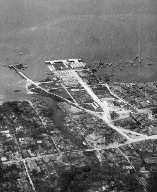 Een rooklucht; brand achter ons hospitaal. De wind was hierheen en de brandende olie tastte de dichtbevolkte kampongs aan van de baai tot het hospitaal..