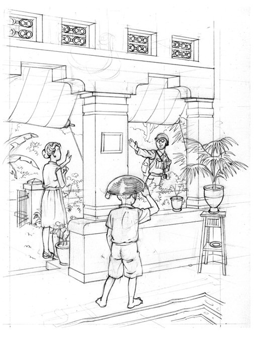 ‘O,’ zei Ronnie’s vader, ‘laat maar. Oud nieuws. De Japanse tanks zijn al onderweg naar hier, naar Soerabaja, hoor ik op de radio. Ga maar naarRonnie.’