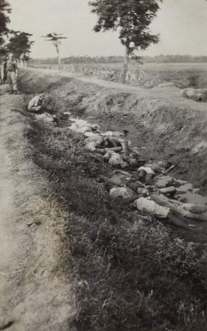 ALS het waar is, dat de foto aantoont dat er een executie heeft plaatsgevonden, wat ik betwijfel, vraag ik mij af welke eventuele “excecuties” door de Indonesiers zijn gepleegd. Ik onderschrijf het geen hierboven de heer Jager schrijft. Ook ik heb eerst in een Japans kamp gezeten onder de Jappen. Na de capitulatie werden we in eerste instantie beschermd door de Jappen en later door de Engelse en de Gurkha’s. Daar werden we beschermd tegen de Bersiap!!