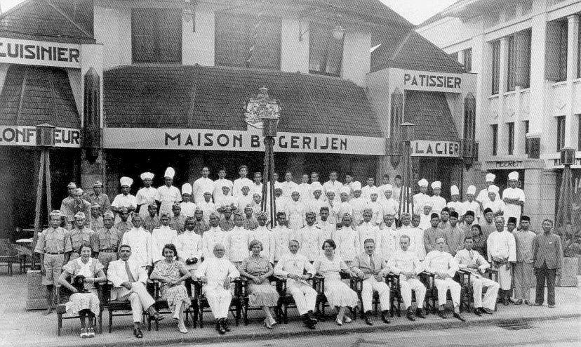 Wanneer ik de foto zie van Maison Bogerijen in Bandung, dan zie ik weer voor me de vrijwel altijd goedgeklede gasten die op het terras onder de parasols zaten en zich tegoed deden aan de heerlijkheden: patiserieën, glacé s en Hollandse c.q.Europese lekkernijen: het was niet bepaald goedkoop (toen al niet in het begin van de 50er jaren.) en voor een schooljongen als ik zo goed als onbereikbaar om er alleen heen te gaan. (het was alleen voor grote mensen zei men) Mijn moeder had er weleens afspraken met andere familieleden en vriendinnen tijdens het theeuurtje tegen het eind van de middag. -Gelukkig voor mij en voor alle andere kinderen kwam er een concurrent (en bovendien veel goedkoper!) precies op de hoek aan dezelfde kant van Braga, die ook ijsjes en sorbetjes verkocht: met de naam: