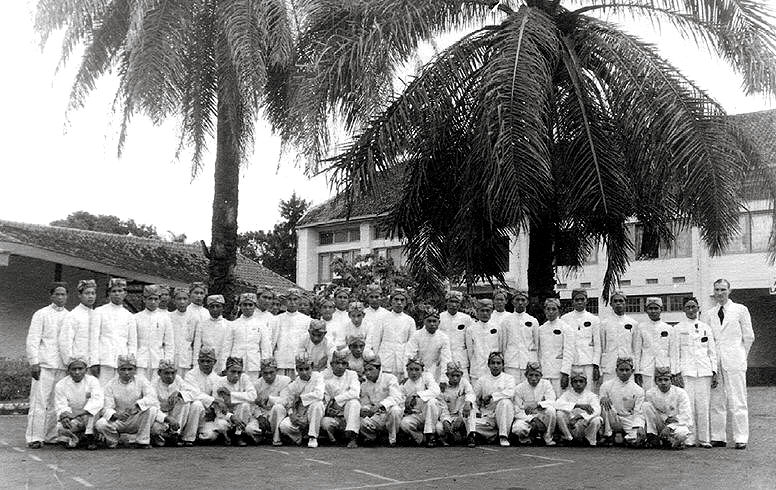 Hendrik Tuinema en Indonesisch personeel Preanger Hotel, 1949