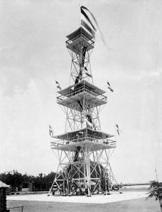 De ontwerper van de toren is niet bekend, maar, ondanks de bijzondere gelijkenis met de Eiffeltoren, Gustave Eiffel was het zeker niet. In de krant werd wel uitgelegd dat de ontwerpers van de marinehaven de hand hadden in de berekening van de draagconstructie. Net als in Parijs moest de bevolking enige schroom overwinnen om het gevaarte te bestijgen. De verdere technische specificaties: de toren had een hoogte van 30 meter, met drie “omgangen” op 9, 18 en 30 meter. “Halverwege den toren was een buffet, waar men tijdens den hoogen klim naar boven even kon uitrusten en een koelen dronk nemen.” Van 1931 weten wij dat de entrée f 0,24 voor Europeanen bedroeg, en f 0,12 voor Inlanders.