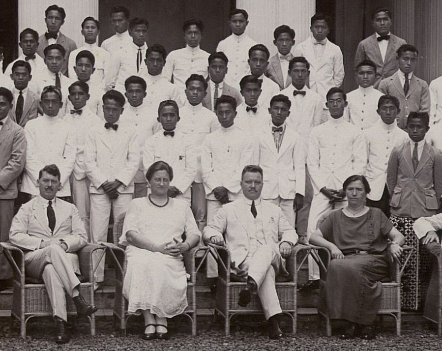 Het echtpaar Koert (midden) en leerlingen H.K.S. Bandoeng