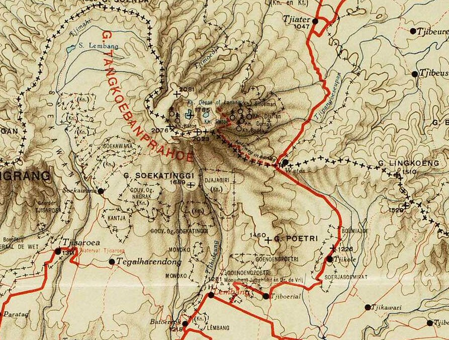Kaart Tangkoeban Prahu, met wandelroute vanuit Lembang