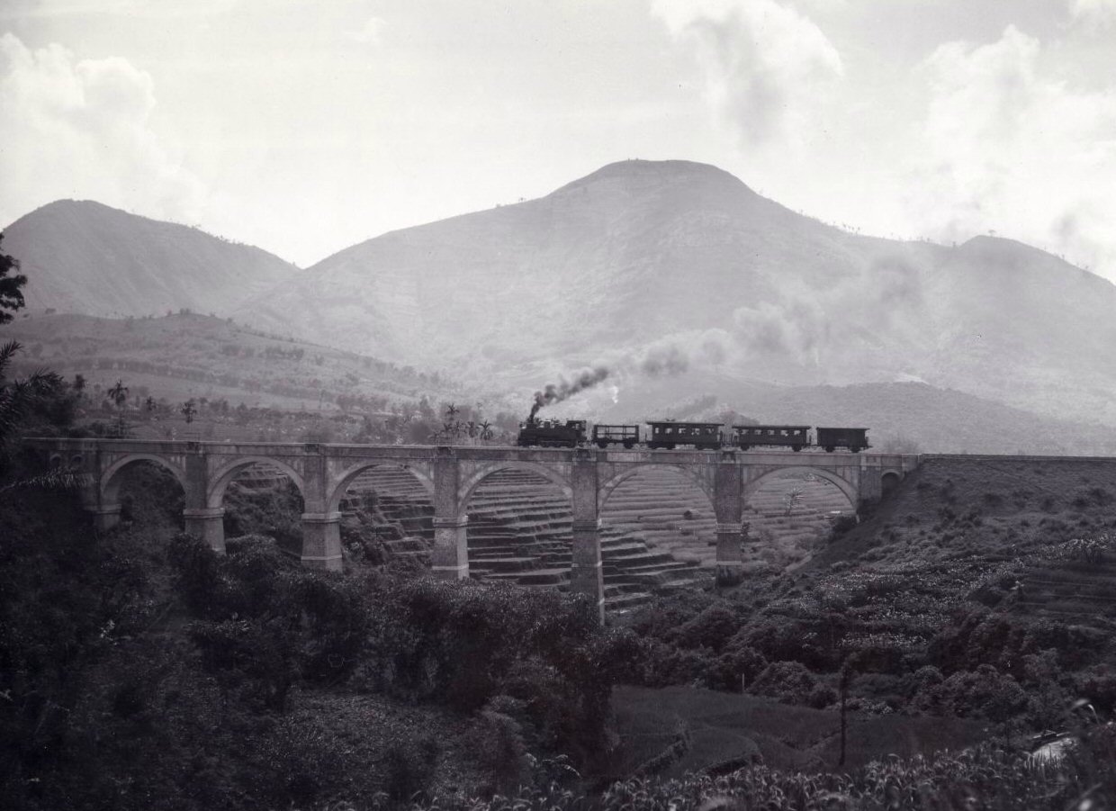 Spoorbrug, met op de achtergrond de Tangkoeban Prahoe.