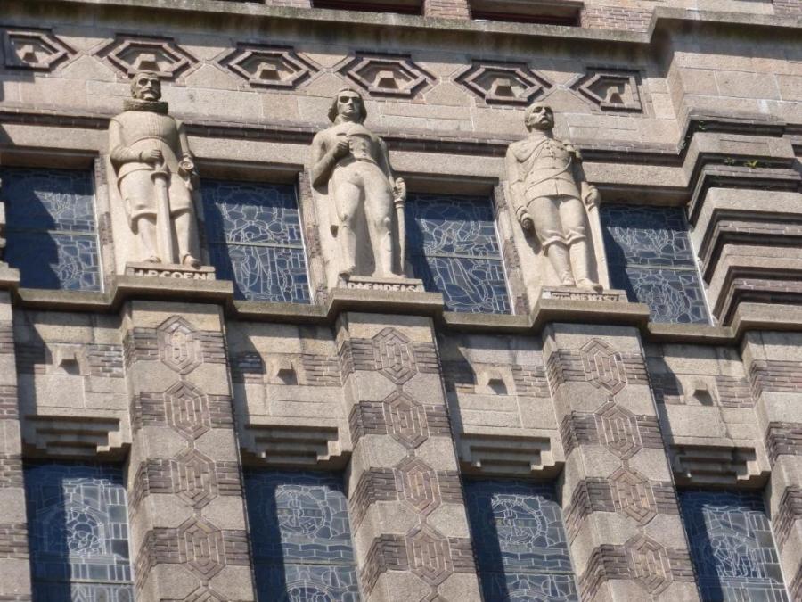 Coen, Daendels en Van Heutsz, op de gevel van het gebouw van De Bazel