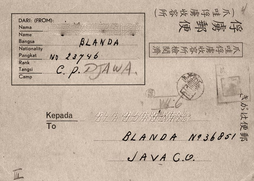 Briefkaart, verzonden van interneringskamp Moentilan naar interneringskamp Tjimahi