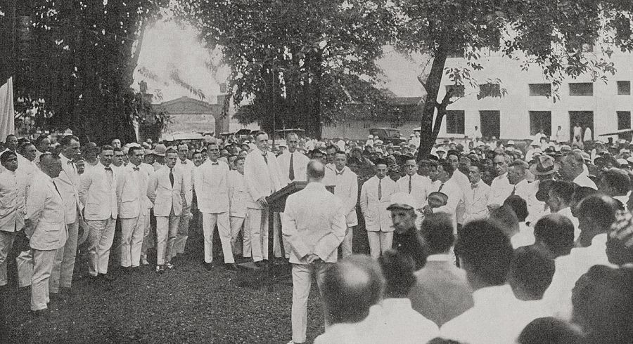 Onthulling van het monument op het terrein van het hoofdkantoor der SS en Tramwegen, 20 november 1926.