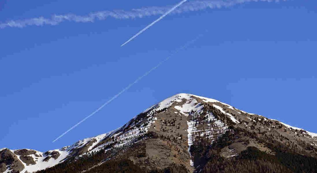 Vliegtuigsporen boven de Alpen