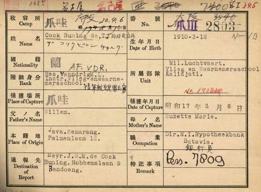 Japanse registratiekaart Tjaarda de Cock Buning (1910-2004)