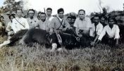 Lapré met gedode wilde buffel, op Lombok.