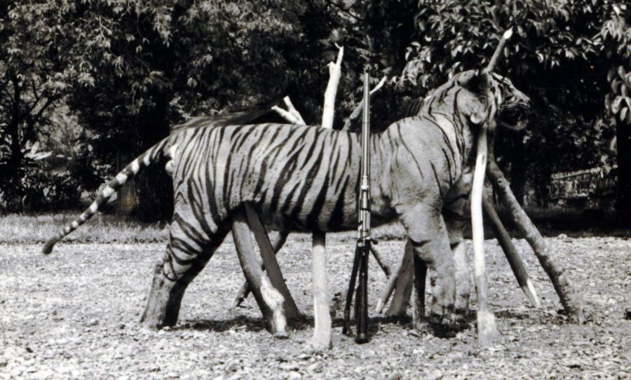 Door A.G.E. Lapré gedode tijger. Let op de huisvlijt om hem rechtop te laten staan!