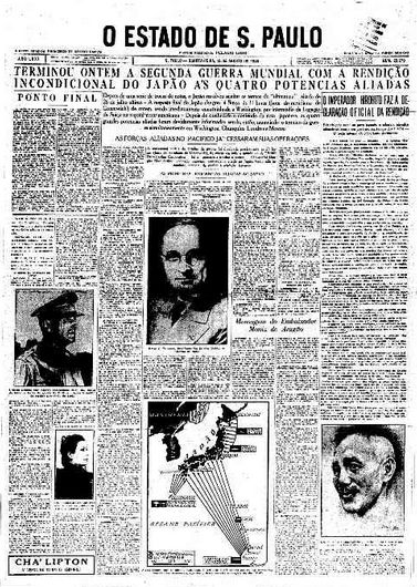 De Japanse capitulatie, zoals aangekondigd, op 15 augustus 1945, in het Braziliaanse blad O Estado de Sao Paulo