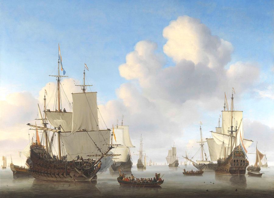 Hollandse schepen op een kalme zee. Willem van de Velde, ca. 1665. Rijksmuseum.