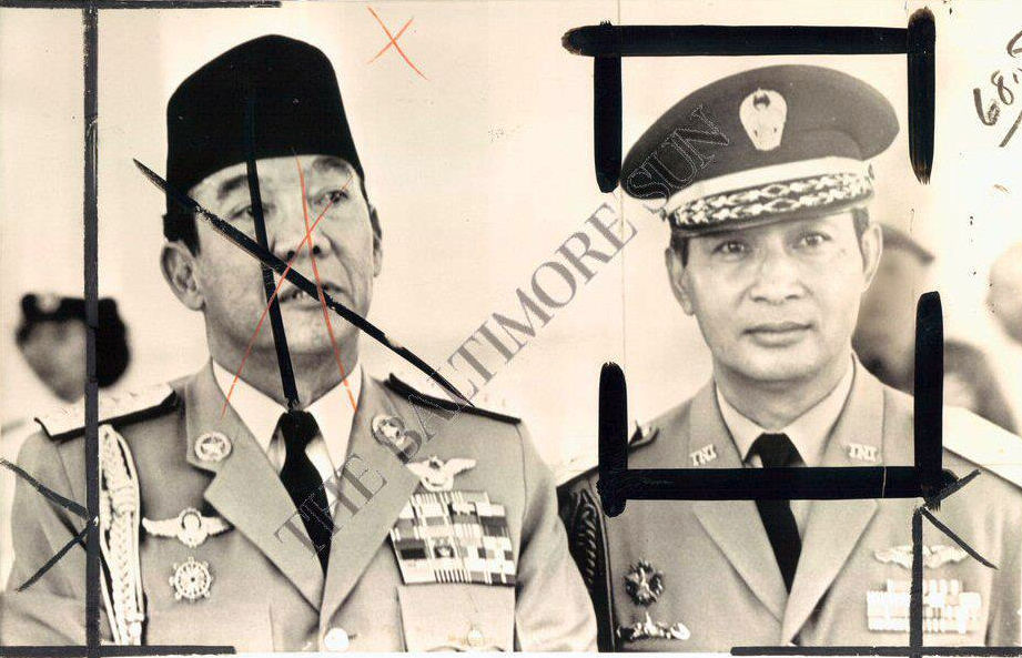 Soekarno en Suharto, 1965. Foto gebruikt door de Amerikaanse krant Baltimore Sun.
