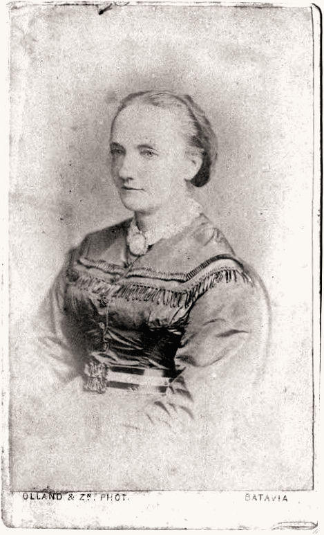 Olland & Zn Batavia: Berthe Hoola van Nooten, fotografie, circa 1860, in handschrift op achterkant (waarschijnlijk van Julius Paul Barth): “Berthe Hoola van Nooten – van Dolder [.] grootmoeder v. Elly van Marle, die haar verzorgde als „Maatji” tot haar 6e jaar in Indië, omdat haar dochter Bertha v. Marle – Hoola v. Nooten, bij de geboorte van Elly gestorven was [.] overgrootmoeder van J.P. Barth en B.M. Hupka-Barth.” (© collectie familie Barth).