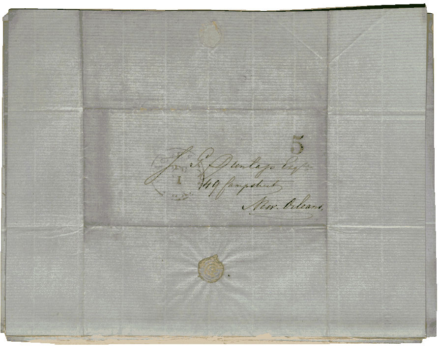 Adres van een brief (10 januari 1855) van Berthe uit Galveston, Texas aan Dunlap in New Orleans, Louisiana