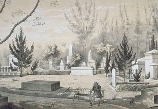 Charles Theodoor Deeleman: Gezigt op de Noordzijde van het kerkhof te Batavia, ca. 1859