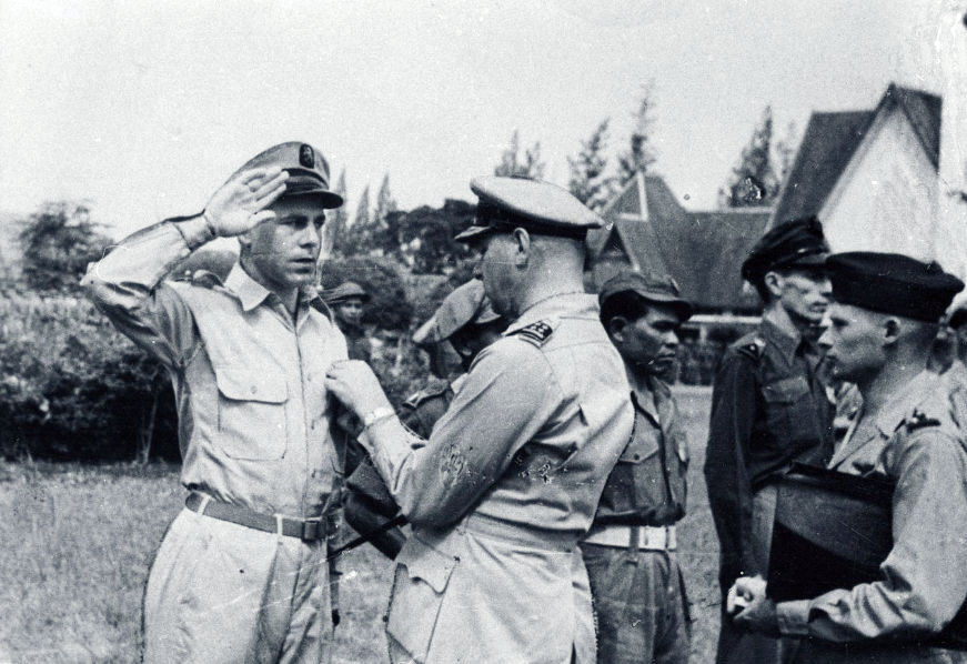 Generaal Spoor geeft kruis van verdienste aan KNIL-militairen, 1947 (foto: Hollandse Hoogte)