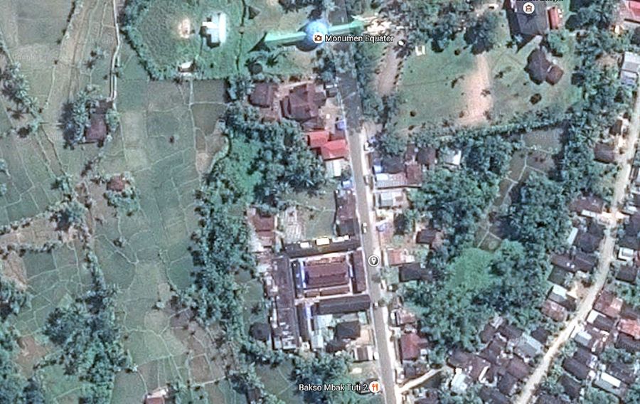 Helemaal boven het huidige Equator-monument, in het midden, met de kleine marker, de correcte aanduiding volgens Google.