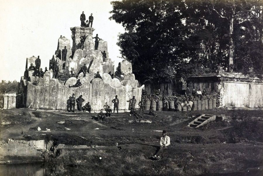 KNIL-militairen op Islamitisch monument, Koetaradja