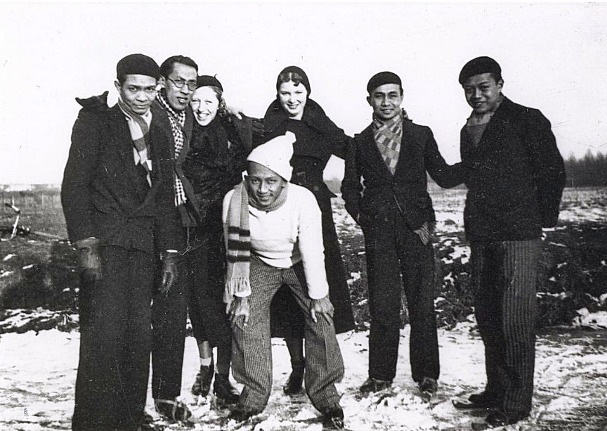 Foto uit 1932 van Indonesische studenten in Nederland. De latere regeringssecretaris Masdoelhak Nasoetion is tweede van rechts. (Kitlv)