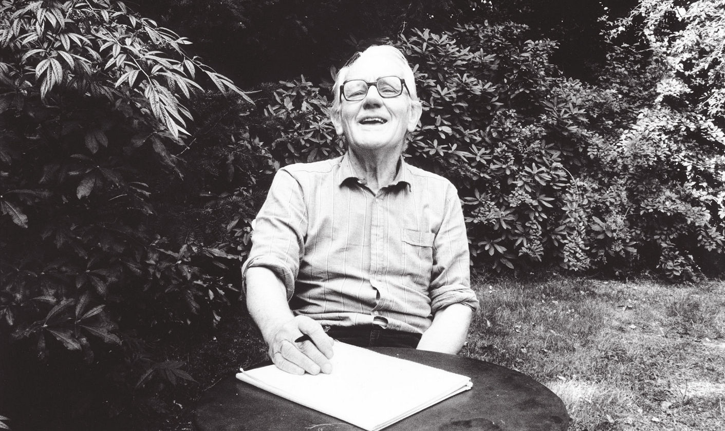 Alberts begin jaren tachtig in de tuin achter zijn huis in Blaricum (foto De Groene/Hans Vermeulen)
