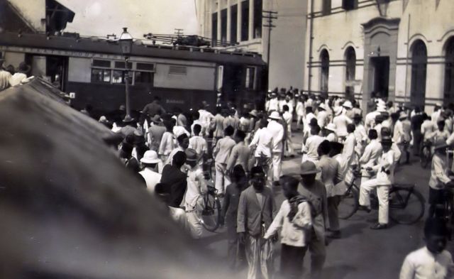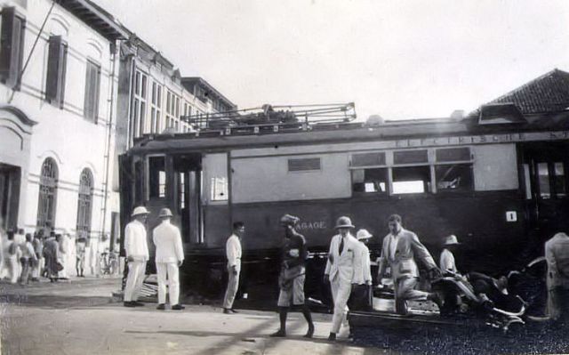 “Spoorweg-ongeluk te Batavia. Hedenmorgen is de elektrische trein, die om 7.31 uur van Kemajoran dient te vertrekken en om 7.38 uur te Batavia-Noord dient aan te komen, ten gevolge van het niet werken der remmen door het stootblok heen gereden en een viersteens muur omver rammend, vlak naast de uitgang voor de Batavia-passagiers, de Binnen-Nieuwpoortstraat ingereden! De motorwagen kwam juist op de rails der stoomtram, recht tegenover den ingang van het gebouw der Handelsvereeniging tot stand. Persoonlijke ongelukken hadden, wonder boven wonder, niet plaats: slechts een sado werd aangereden. Het paard werd in den buik getroffen en moest worden afgemaakt. De koetsier kwam met den schrik vrij, de sado werd vernield. De trein is met vier minuten vertraging, alzo om 7.35 uur van Kemajoran vertrokken en arriveerde ook vier minuten te laat, om 7.42 uur, te Batavia- Noord.