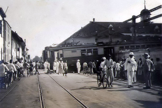 De trein komt tot stilstand in de Binnen Nieuwpoortstraat