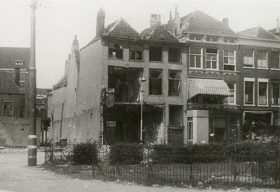 In Den Haag werden tijdens de oorlog 1754 woningen totaal verwoest en 4324 woningen door de bevolking zwaar beschadigd om aan brandhout te komen. Vernielde huizen aan de Turfmarkt.
