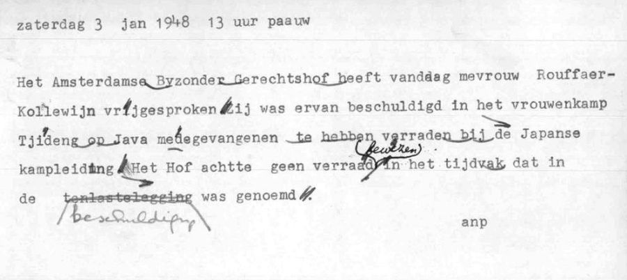 De radio-tekst van het ANP met betrekking tot de uitspraak