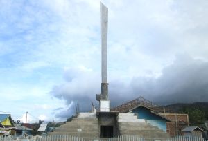 Tenslotte nog een woord over het monument voor De Kat Angelino. Bijzonder genoeg  is “de obelisk van vier meter hoog, op een voetstuk van cement, aan alle zijden bekleed met in Soerabaja vervaardigde marmeren platen, vastgehecht met bronzen knoppen” behouden gebleven, zij het dat de marmeren platen zijn verwijderd. In Sarumpaga wordt het monument nu gezien als erfgoed van de strijd van het Indonesische volk tegen de koloniale overheersers. Om iedere twijfel over de interpretatie weg te nemen, is even verderop een nieuw monument opgericht om deze strijd te herdenken. Dit nieuwe monument verwijst wel héél nadrukkelijk naar de dood van De Kat Angelino: een parang, geplaatst op een voetstuk.