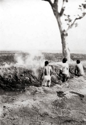 Een vermoedelijke executie van Indonesische jongeren. Foto afkomstig van album Jacob Ridderhof. [Stadsarchief Enschede]