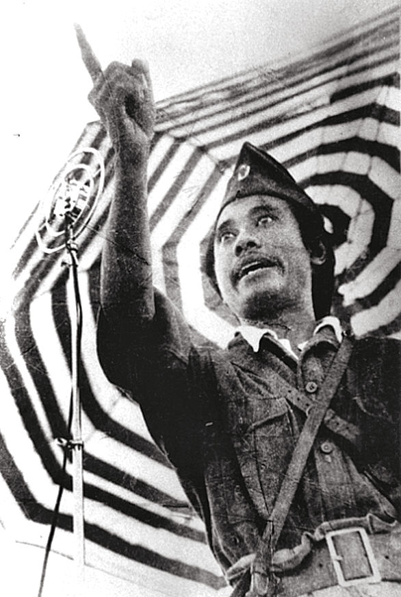 Propagandist Bung Tomo spreekt tot het Indonesische volk, Soerabaja, oktober 1945.