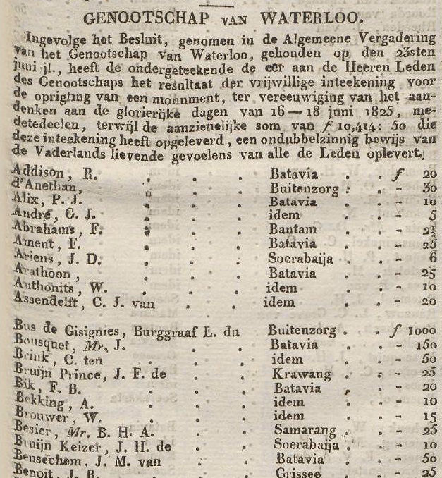 De intekenaren van het monument