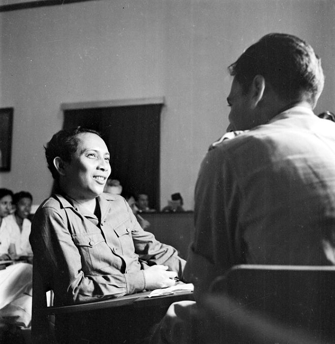 Soetan Sjahrir pleegt overleg in het voorlopige Indonesische parlement, de K.N.I. Poesat, 1947. [Cas Oorthuys, NA]
