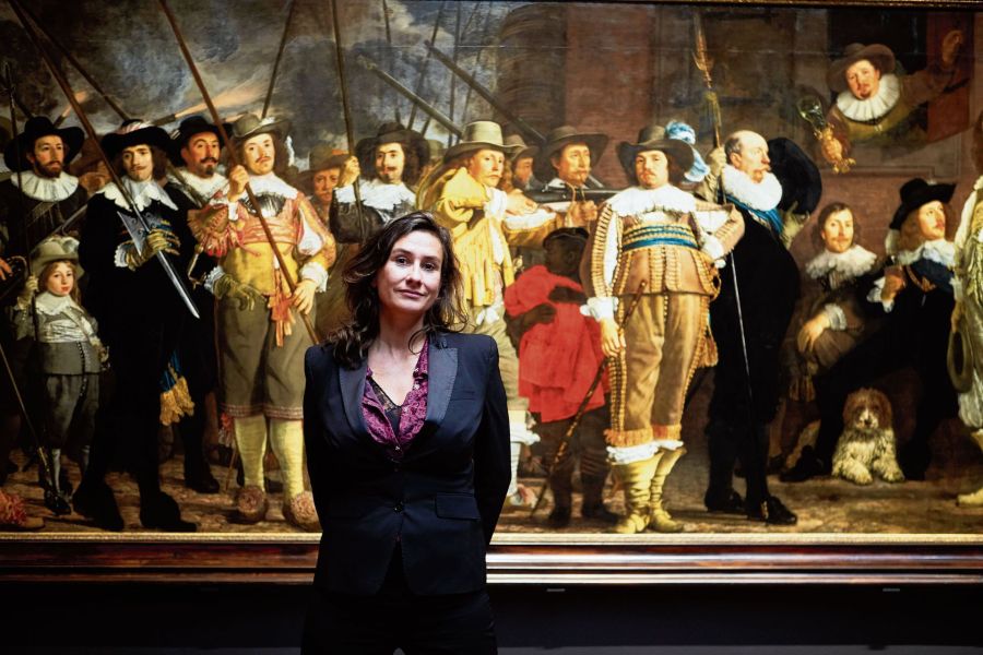Martine Gosselink voor het schuttersstuk van Bartholomeus van der Helst