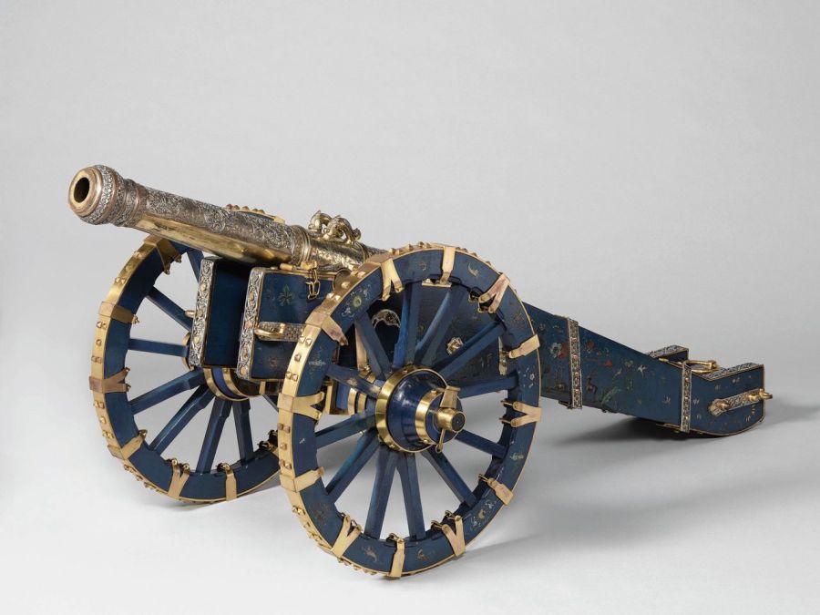 Singalees kanon, voor 1745. Met dit kanon werden saluutschoten afgevuurd om de bezoekers van de koning van Kandy te verwelkomen. Op de loop staan de symbolen van de koning: een zon, een halve maan en de Singalese leeuw. Tijdens een militaire campagne in 1765 maakten de Nederlanders het fraaie kanon buit. Ze schonken het aan stadhouder prins Willem V voor diens rariteitenkabinet in Den Haag.