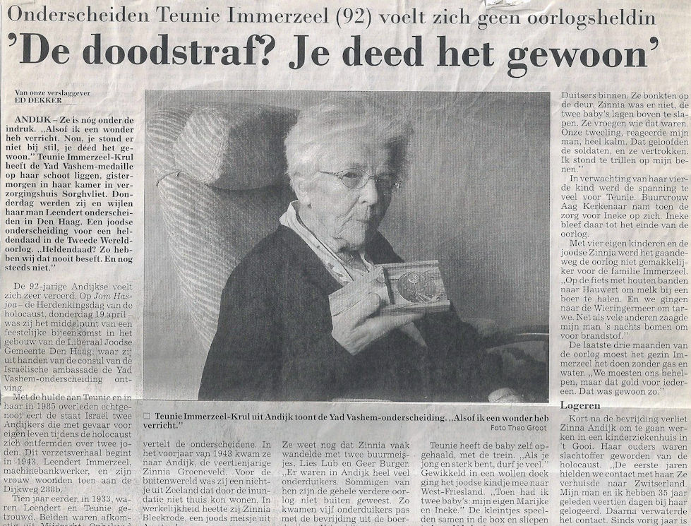Mevrouw Immerzeel-Krul t.t.v. de uitreiking