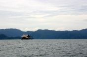 Terwijl ik de bergvegetatie afspeur, komen er passanten om me heen staan, want buitenlanders komen hier vrijwel nooit, en degenen die wel komen, kijken naar de baai. Ik vertel wat ik zoek; ze weten er alles van – kom mee! Dolf start de auto en een paar honderd meter verder stoppen we voor een huis dat in de voordeur een drempel van een paar decimeter hoogte heeft. Vlak voor de drempel, als opstapje, ligt de sokkel van het Takasima-monument. Soekarno zou zich in zijn graf omdraaien als hij het wist.