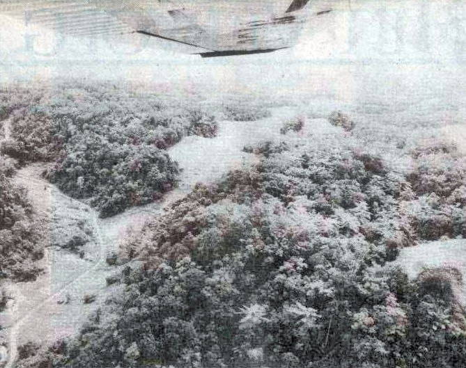 De plaats van het gevecht bij Salenda. Links de weg Poso-Kolonodale.