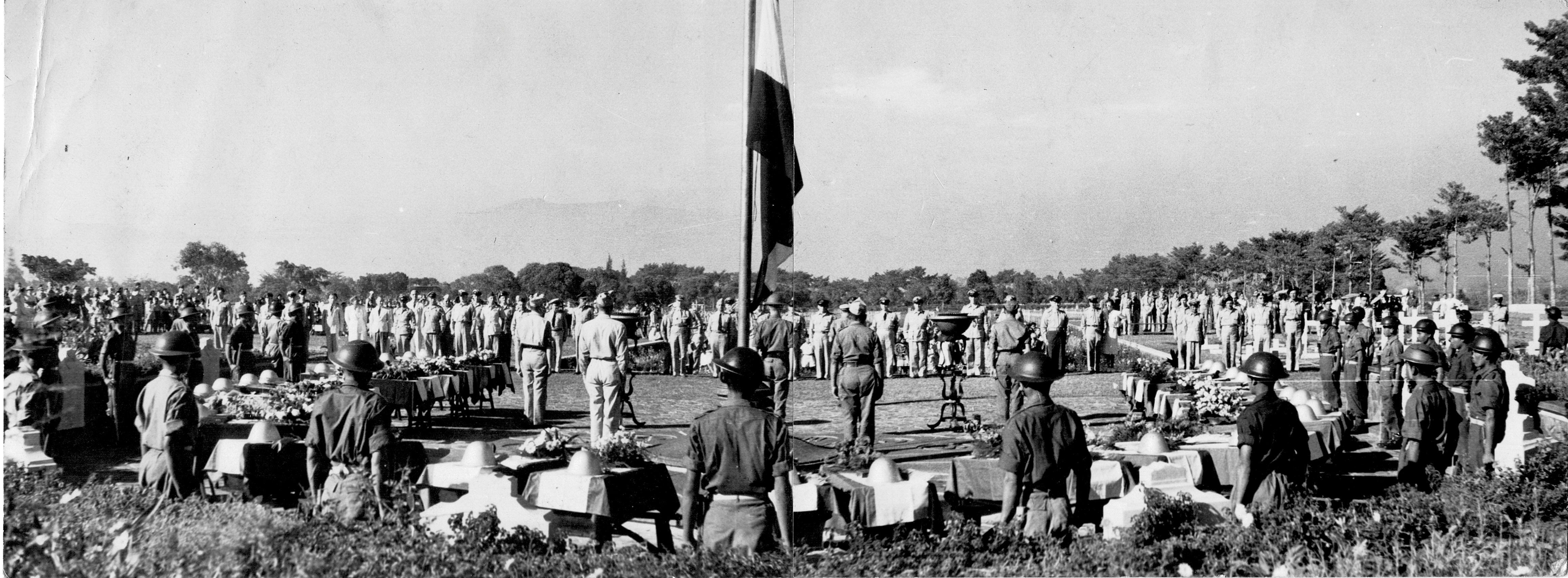 Begrafenis Rapmund en anderen RAPWI moorden Tjiandjoer oktober 1945 op ereveld Pandu, 1946