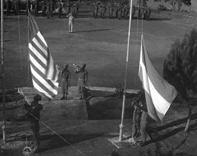 De Papoeavlag en Nederlandse vlag, zij aan zij.