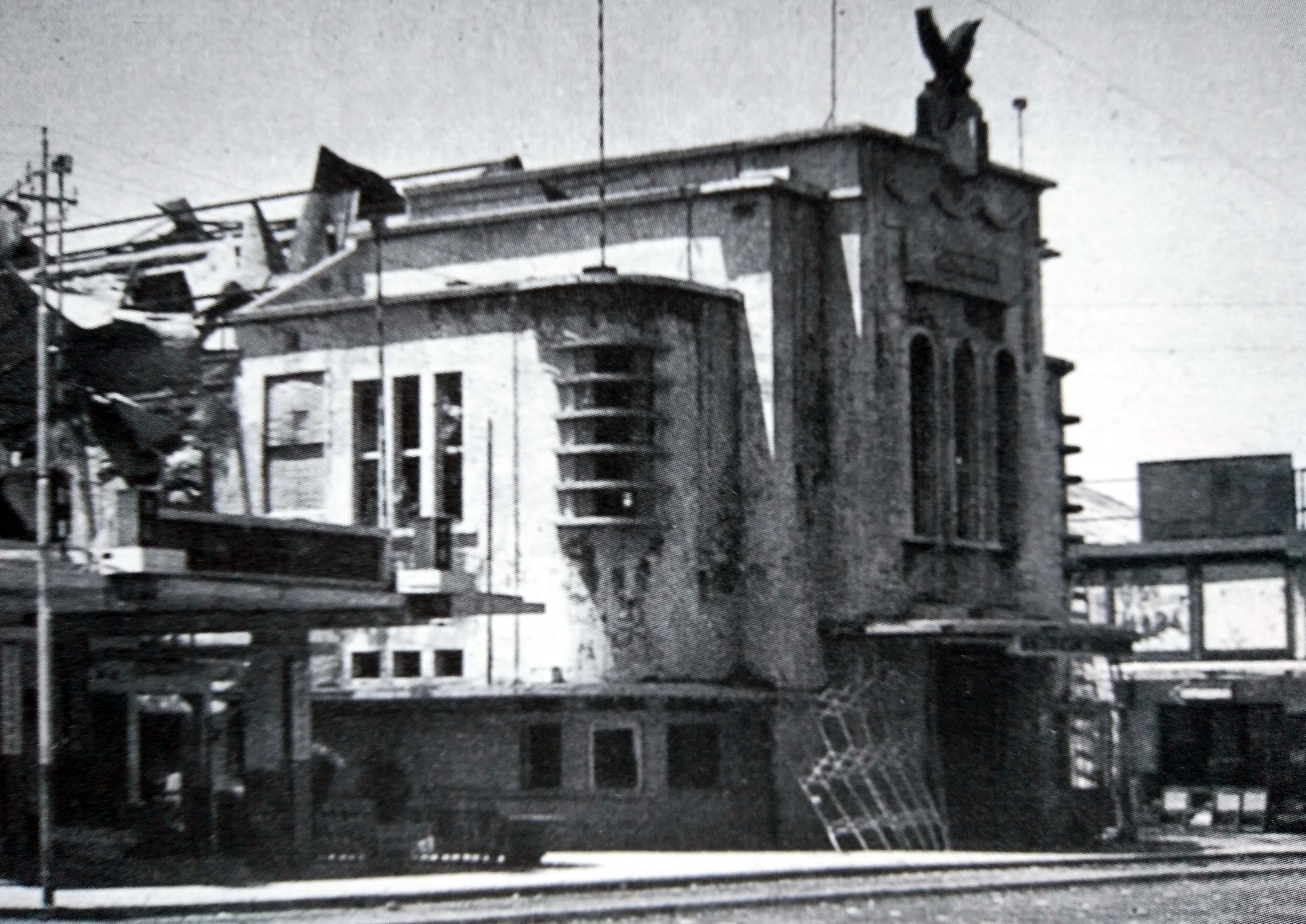 Bandoeng in bersiapperiode: uitgebrande bioscoop aan de Aloon-aloon