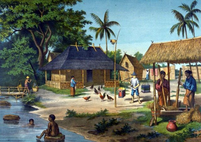 Ja, wie het leven wil leren kennen, het leven zoals het in werkelijkheid is, moet het observeren vanaf het achtererf. Daar kan men genieten van de hysterische uitbarstingen der juffrouw, die een diepgewortelde grief koestert tegen haar echtgenoot; of van het gierend gekakel van het kransje van dames, die een beetje bij elkaar mampieren, gezeten in een kringetje op een matje, met ieder een glaasje stroop met klappa-moeda en een sirih-dot ter afwisseling. Of van het eeuwige gehuil van het stoute kind, dat we hebben gekend vanaf zijn geboorte, steeds huilende en drenzende, zelfs nu het al een broek aan heeft, altijd maar om snoep, snoep!