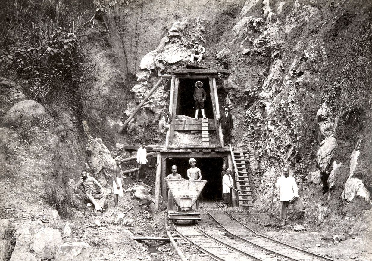 Ingang van een van de Oembilin-steenkoolmijnen bij Sawahloento. 1890-1905. (TM)