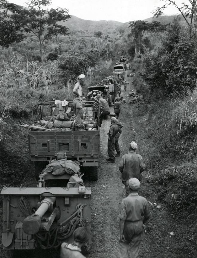 Nederlandse militaire colonne tijdens de politionele acties in Nederlands-Indië, 1947 (Wilmar, NA)