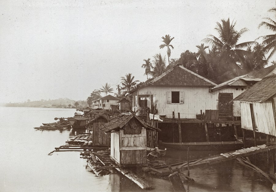 Dorp aan de rivier, Borneo